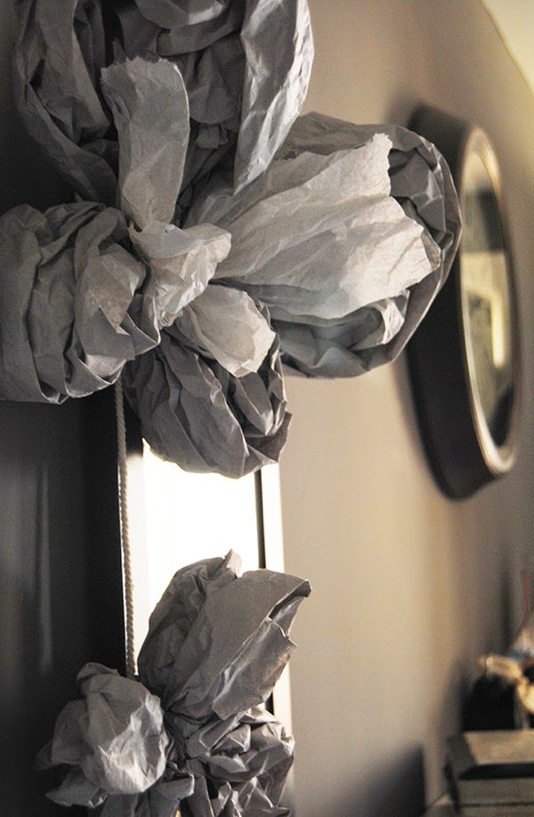 Hace poco hice una guirnalda con pompones y me he dado cuenta que esto de colgar cosas de las paredes y el techo engancha. Ahora cuando voy a cualquier sitio sólo hago que ver guirnaldas por todas partes. No sé si me persiguen ellas a mí o yo a ellas. Con el papel que viene en las cajas de zapatos o con el papel que usan para envolver los objetos frágiles en las tiendas podemos hacernos nuestros propios diseños.