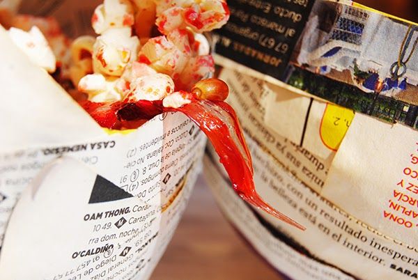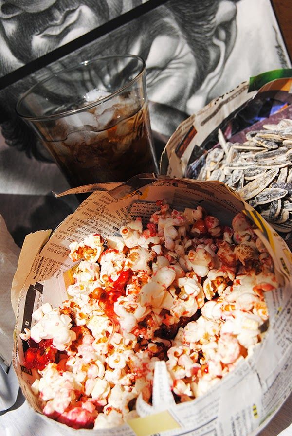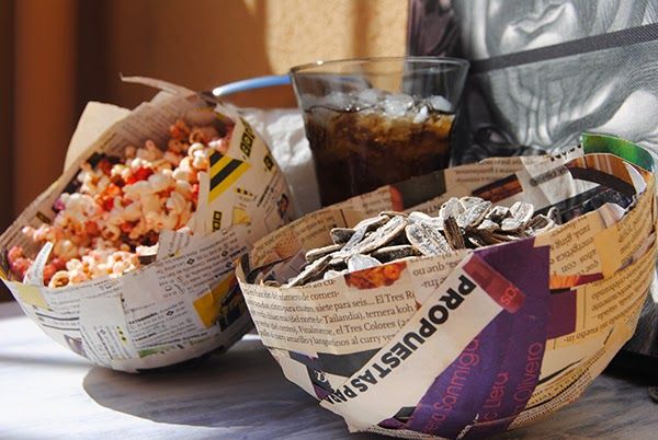 Como no se puede meter dentro nada que moje, por razones obvias, he decidido montar una tarde de cine en casa con las pipas y las palomitas en los nuevos cuencos. Ñam, Ñam…