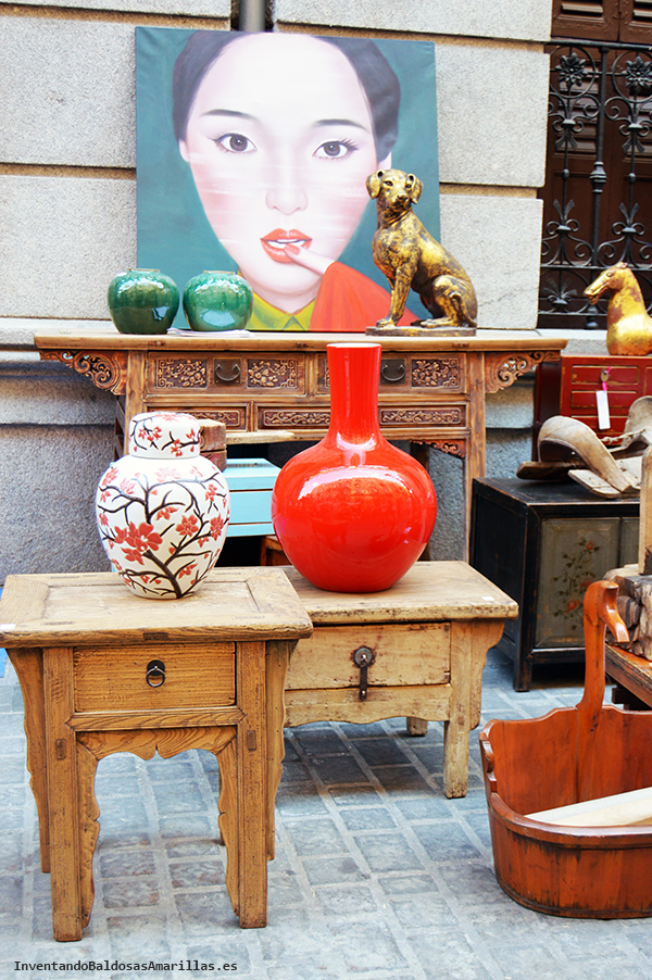 Está en la calle Huertas y está llena de piezas retro, vintage y recicladas. Ayer, puse alguna foto en detalle de sus cojines y cajas. Hoy os dejo una imagen un poco más amplia de lo que podemos encontrar allí.