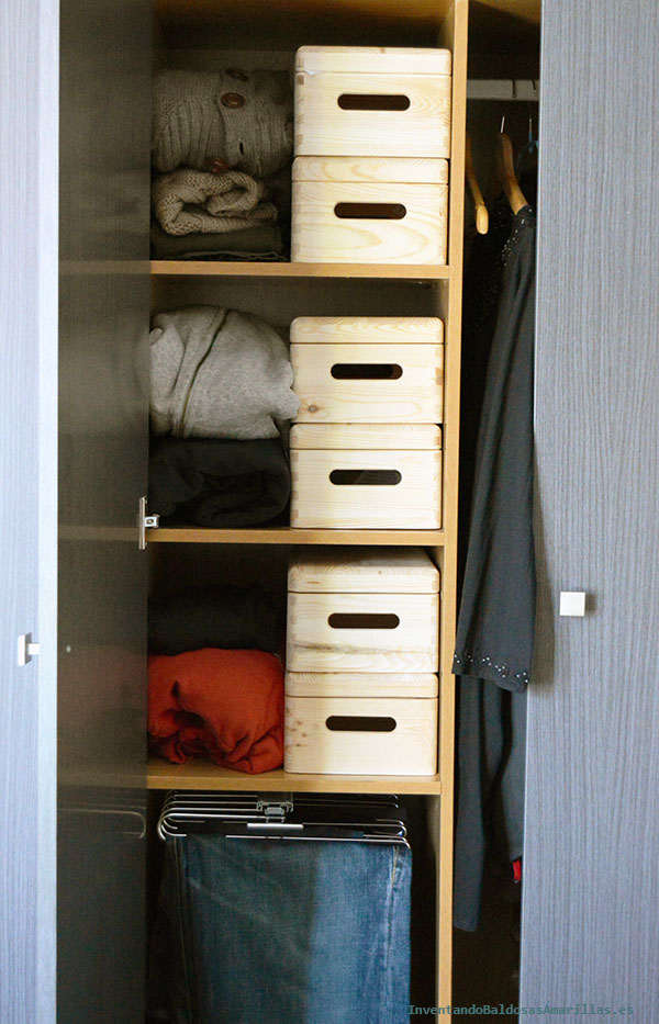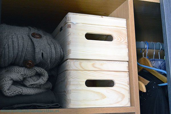 | Cajas de madera para ordenar en el interior de los armarios. |