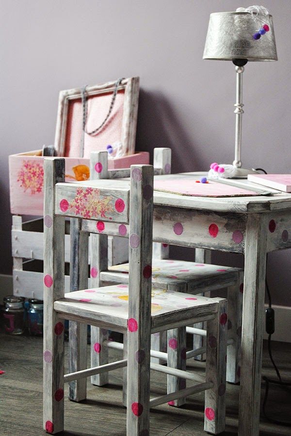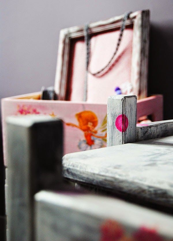 2. Hola Olga, una preciosidad la habitación de Julia! Me encanta cómo le creaste ese ambiente tan femenino y principesco, y a la vez tan deliciosamente frugal (gracias a Dios no soy la única que usa cajones de frutas como mesilla en el cuarto del niño…) Aluciné con los detalles, como las cajitas con botones o los lunares de la mesa y sillita… Un lujo digno de esa princesita, seguro ella se siente de maravilla en sus aposentos!