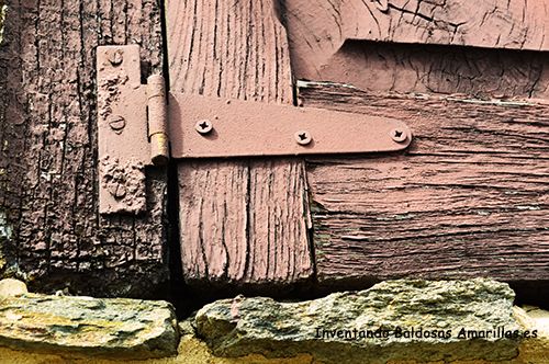 Puerta de madera desgastada por el paso del tiempo.