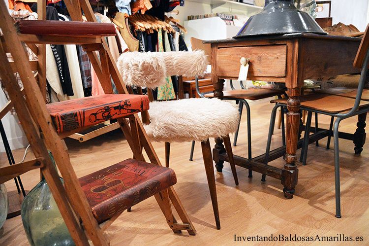 Si al ver los muebles, has pensado son espectaculares, pero a mí esto no me cabe en casa, hay alternativas. Sé que puede parecer muy poco práctico, pero me ha encantado la escalera de madera. Que sí, que es muy práctico usar una escalera de madera para decorar en casa. Pero es un detalle, tan bonito para emplear como estantería.