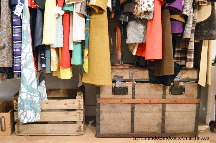 A parte de la ropa, donde hay decenas de vestidos, camisetas, chaquetas… teníamos que cotillear debajo. Las cajas de frutas y por supuesto, un baúl de madera con correas de cuero.