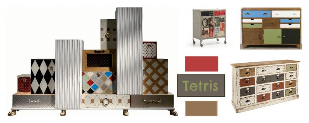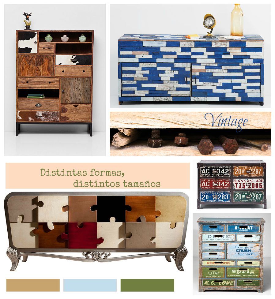 Cómodas vintage con cajones de distintas formas.