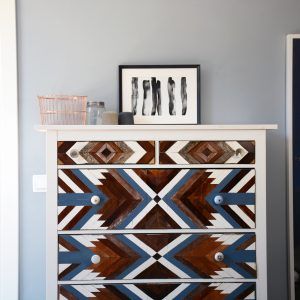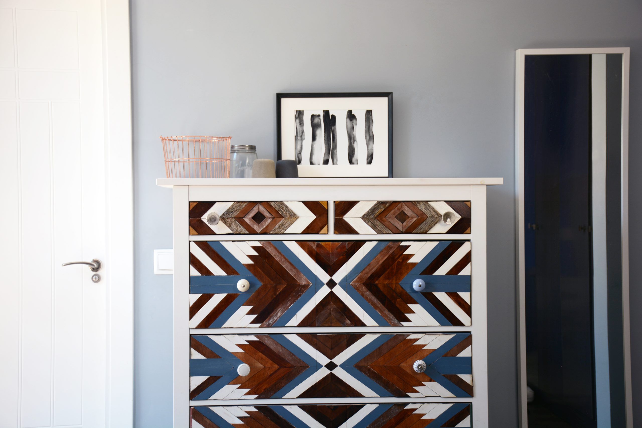 Con nuestro mueble estrenando nuevo color podemos empezar la siguiente fase, la de la decoración. Podemos hacerlo con papel, hilos, tintas… pero en esta ocasión echamos mano de la pintura y de la cera para lograr efectos que añadan carácter a nuestros muebles.