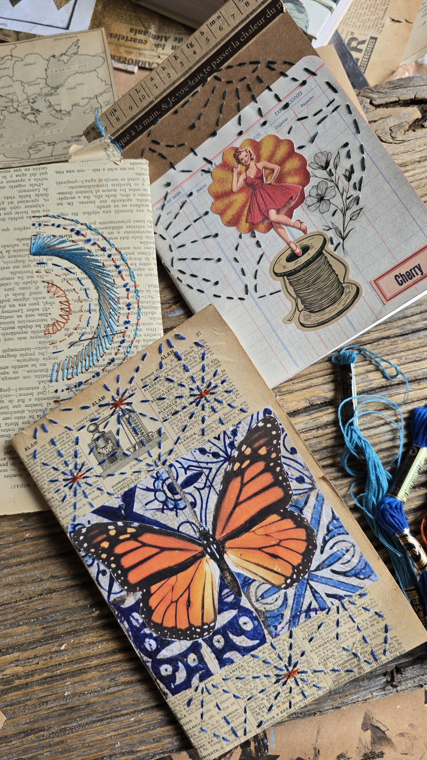 Durante el taller veremos diversas opciones para combinar los papeles entre sí y con otros materiales como pegatinas, washi, tintas, hilos…. No es necesario tener conocimientos previos