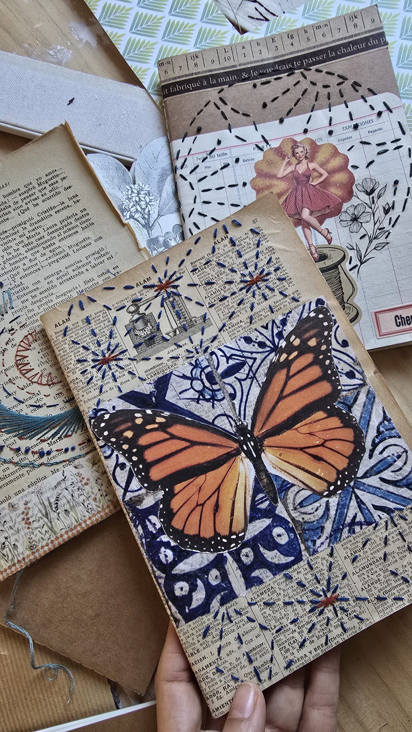 Durante el taller veremos diversas opciones para combinar los papeles entre sí y con otros materiales como pegatinas, washi, tintas, hilos…. No es necesario tener conocimientos previos