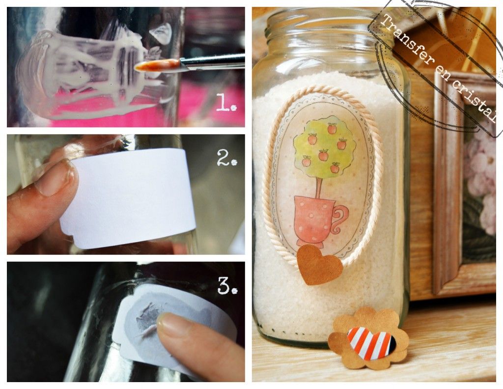 | Paso a paso para hacer transfer con gel en botes de cristal. |
