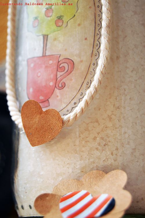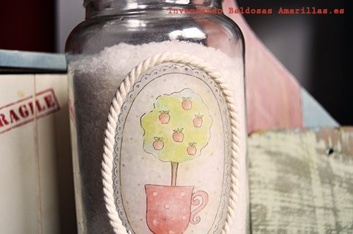 Y para terminar de decorar mi bote de cristal y rematar el contorno, le ha colocado una pequeña cuerda de algodón.