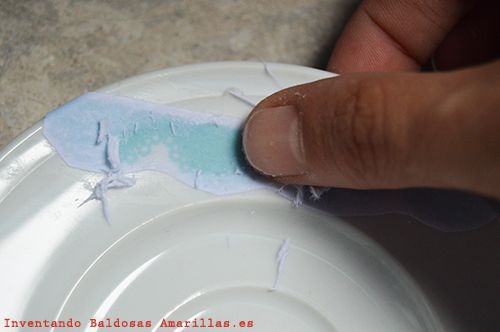 Con mucho cuidado vamos humedeciendo ligeramente el papel y con el dedo o con la ayuda de una esponja vamos retirando las capas de celulosa. Dejamos secar y repetimos el procedimiento hasta retirar todo el papel.