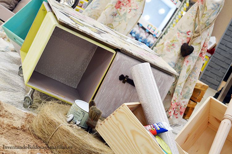 Hoy nos enfrentamos a un reto que nos ha lanzado Leroy Merlin se trata de hacer un ambiente otoñal, pero inspirado en los cuentos de hadas. Y como las telas que han sacado para esta temporada no podían ser más bonitas teníamos que hacer algo con ellas. A lo que hay que sumar sus carteles vintage y las cajas de madera que no podían faltar. Así que entre otras cosas, nos decidimos por montar una mesa hecha de cajas de madera y decoradas con papel pintado. Os contamos el paso a paso.