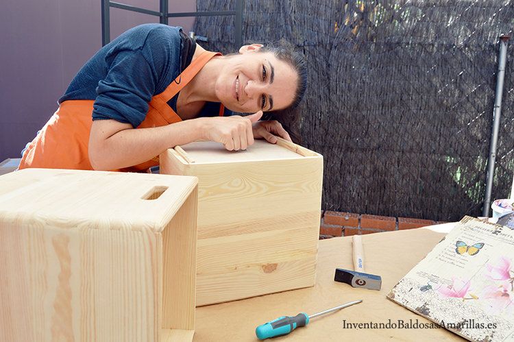 • Cuatro cajas de madera de Leroy Merlin. Pero de las cuadradas altas. (yo las descubrí la semana pasada)